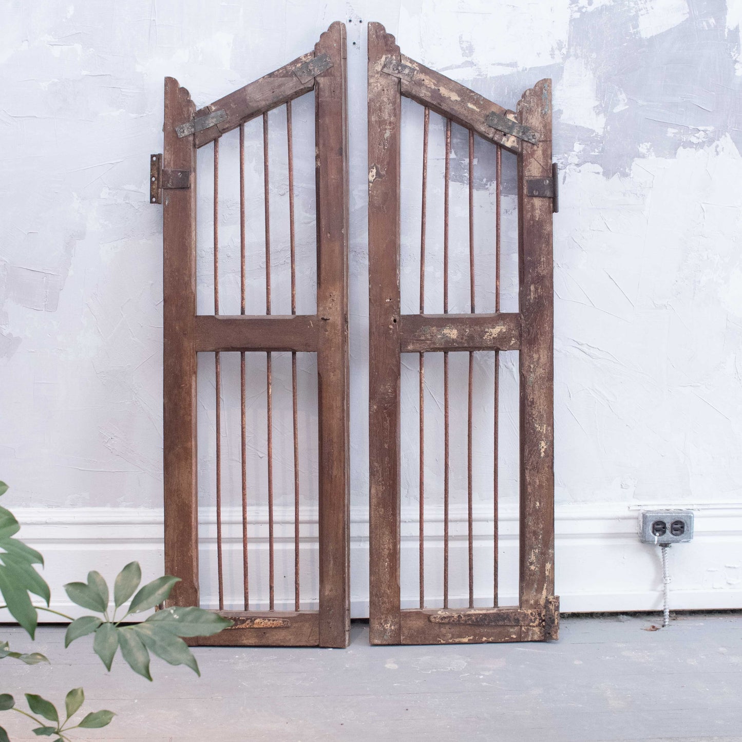 One of a kind wooden and metal shutters. Can be used for wall decor or as functional gates.
