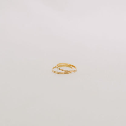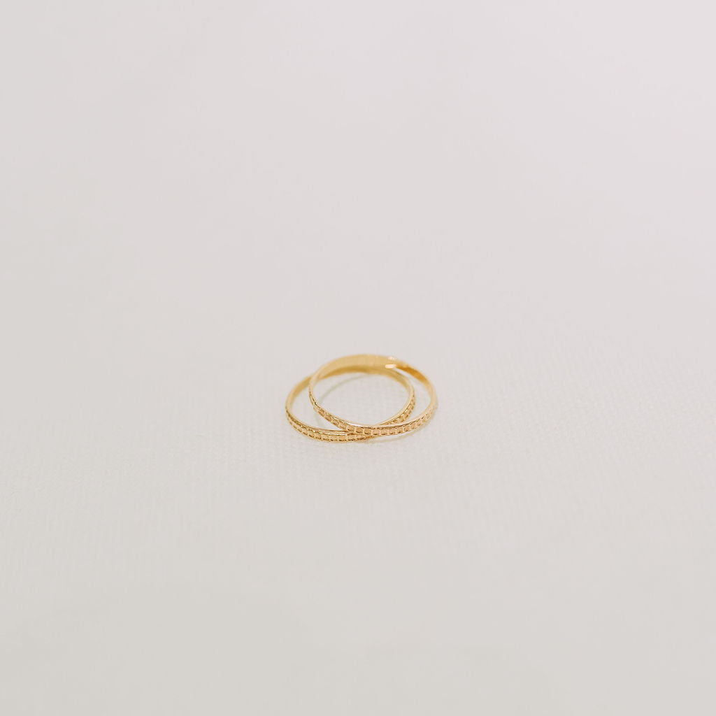 10K solid yellow gold band featuring a design that looks like chain. These bands are made using vintage molds that we press into the gold.