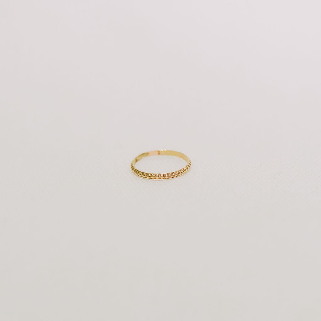 10K solid yellow gold band featuring large impressed dots. These bands are made using vintage molds that we press into the gold.