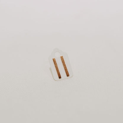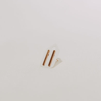 Solid 10K rose gold bar studs.