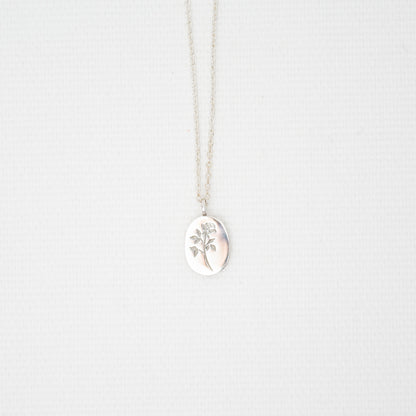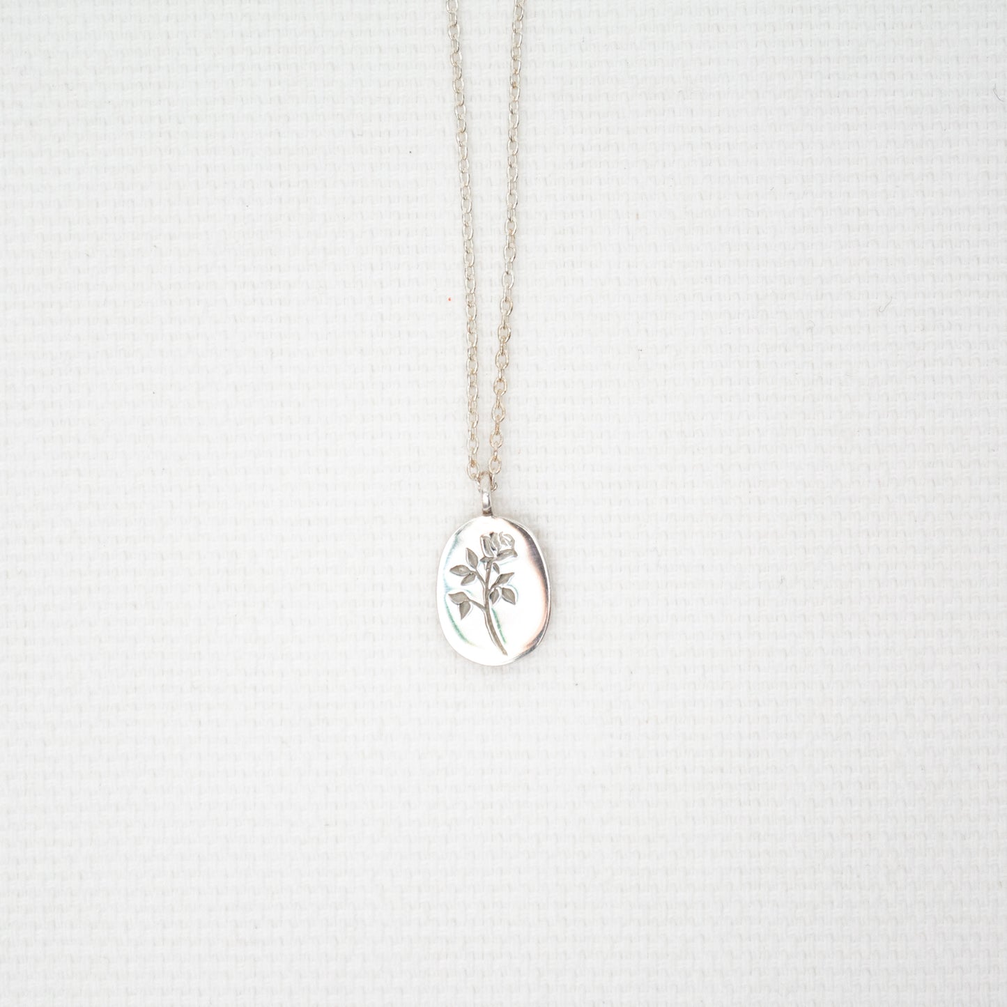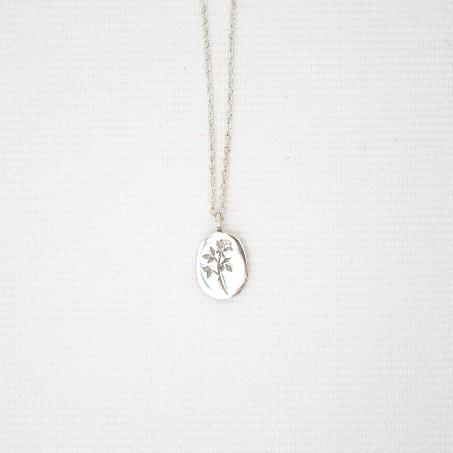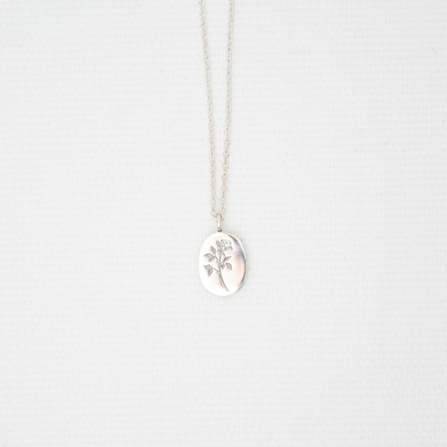 Engraved garden rose necklace.First fabricated and engraved by hand, then cast in recycled metal. Sterling Silver Pendant with Sterling Silver Chain.