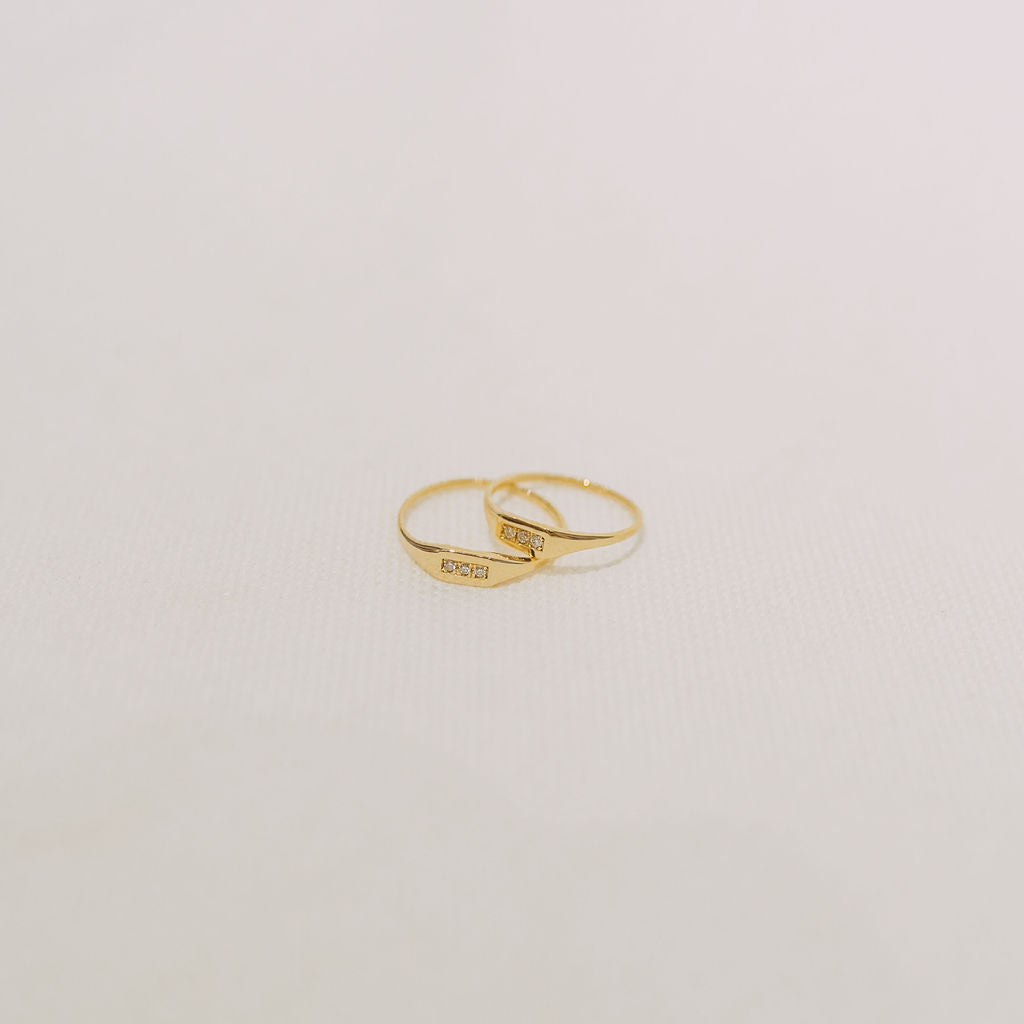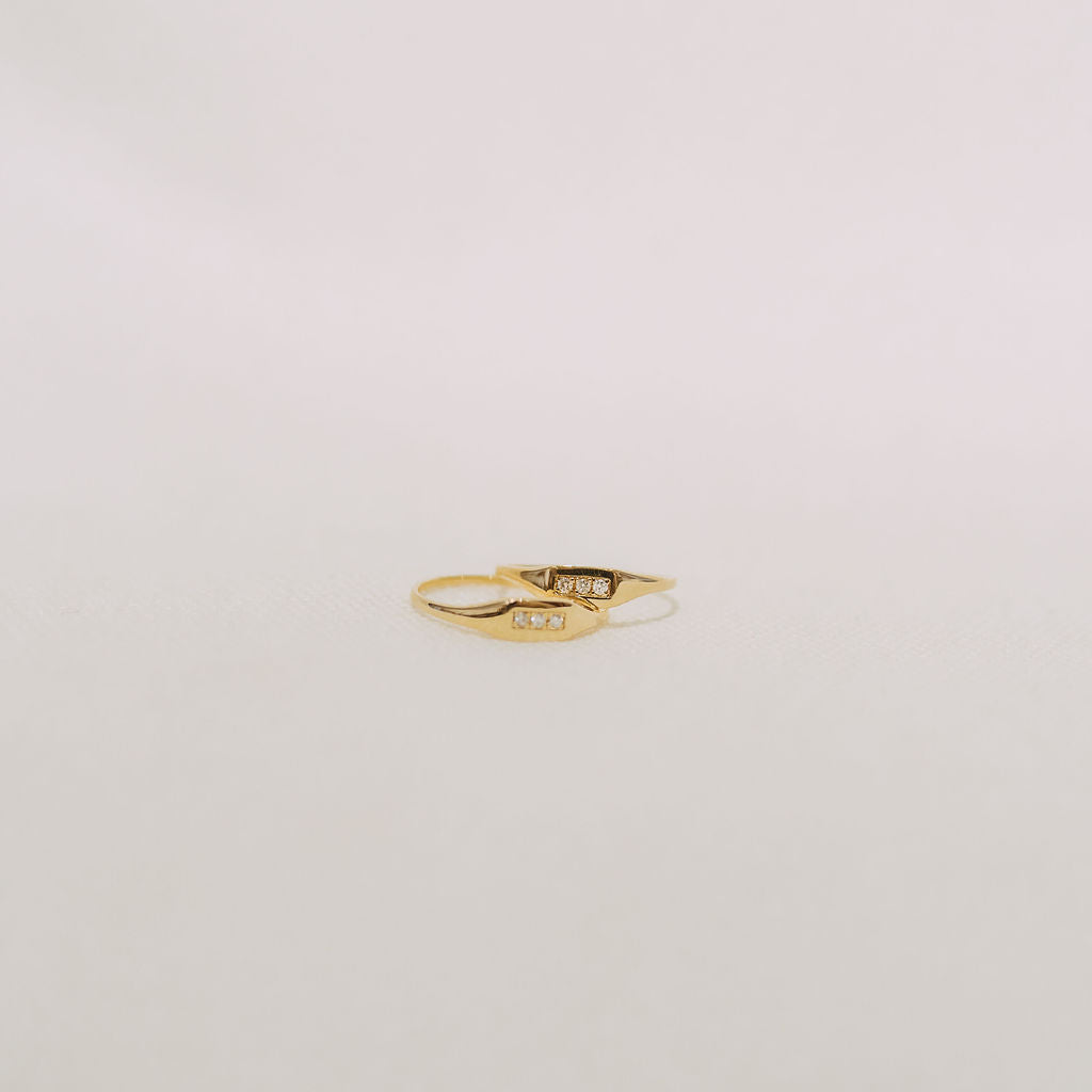 Trio of diamonds in a rectangle signet ring in 14K solid yellow gold.