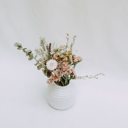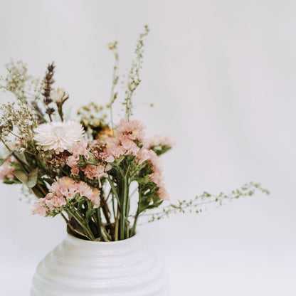 Our dried flower subscription includes a $40 mini dried flower arrangement in a small bud vase delivered on the first Tuesday of every month.