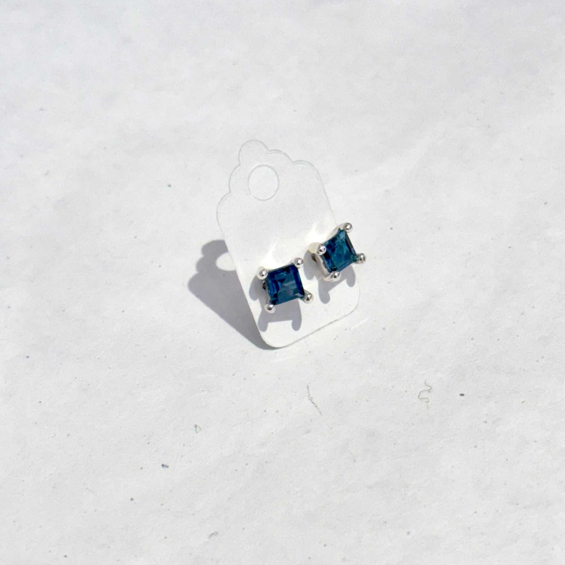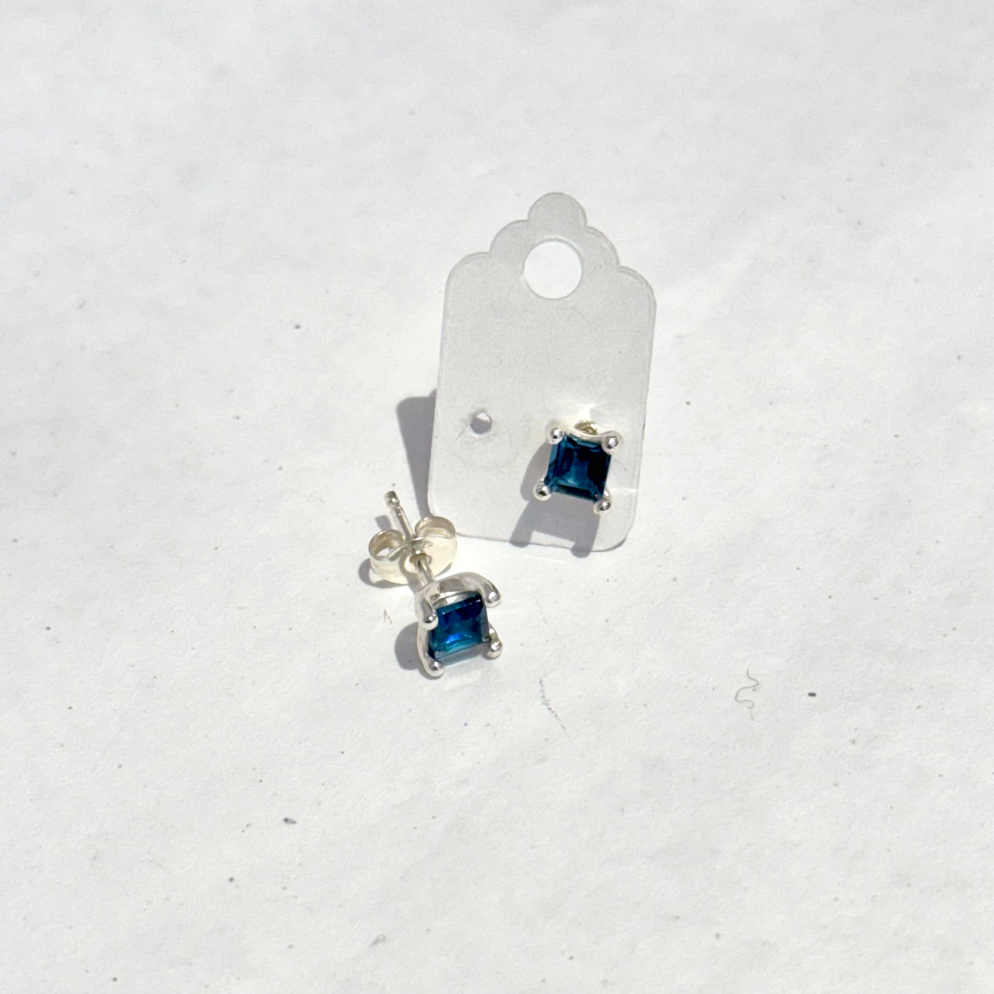 - 925 Sterling silver studs with blue topaz lab gemstone
