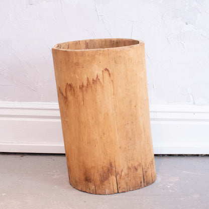 One of a kind antique large carved rustic wooden vessel. Use as a pot or vase.