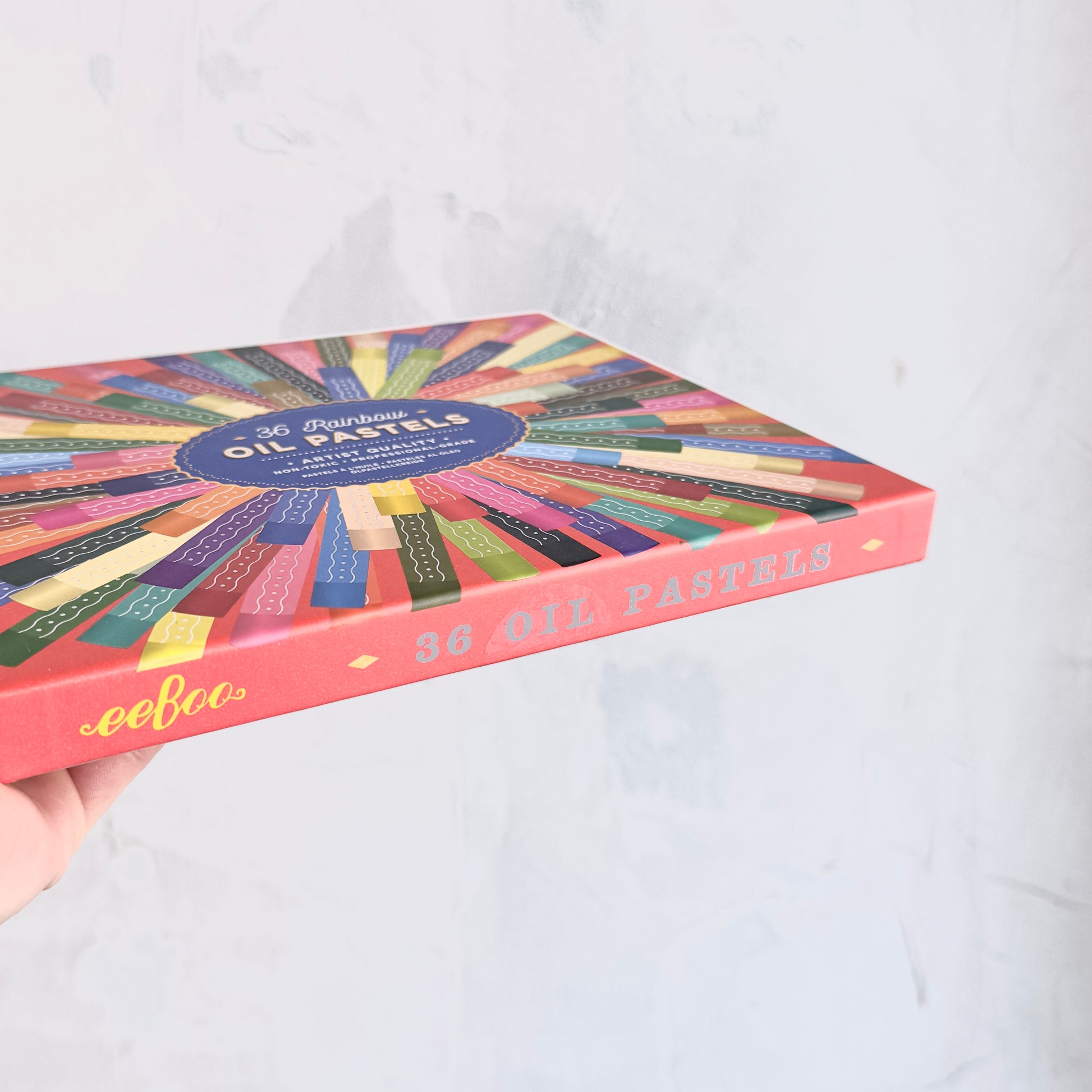 Artist-quality oil pastel sticks in a brilliant array of 36 fade-resistant, long-lasting colors. Packaged in a sturdy, sliding box featuring an explosion of color by our own eeBoo designers.