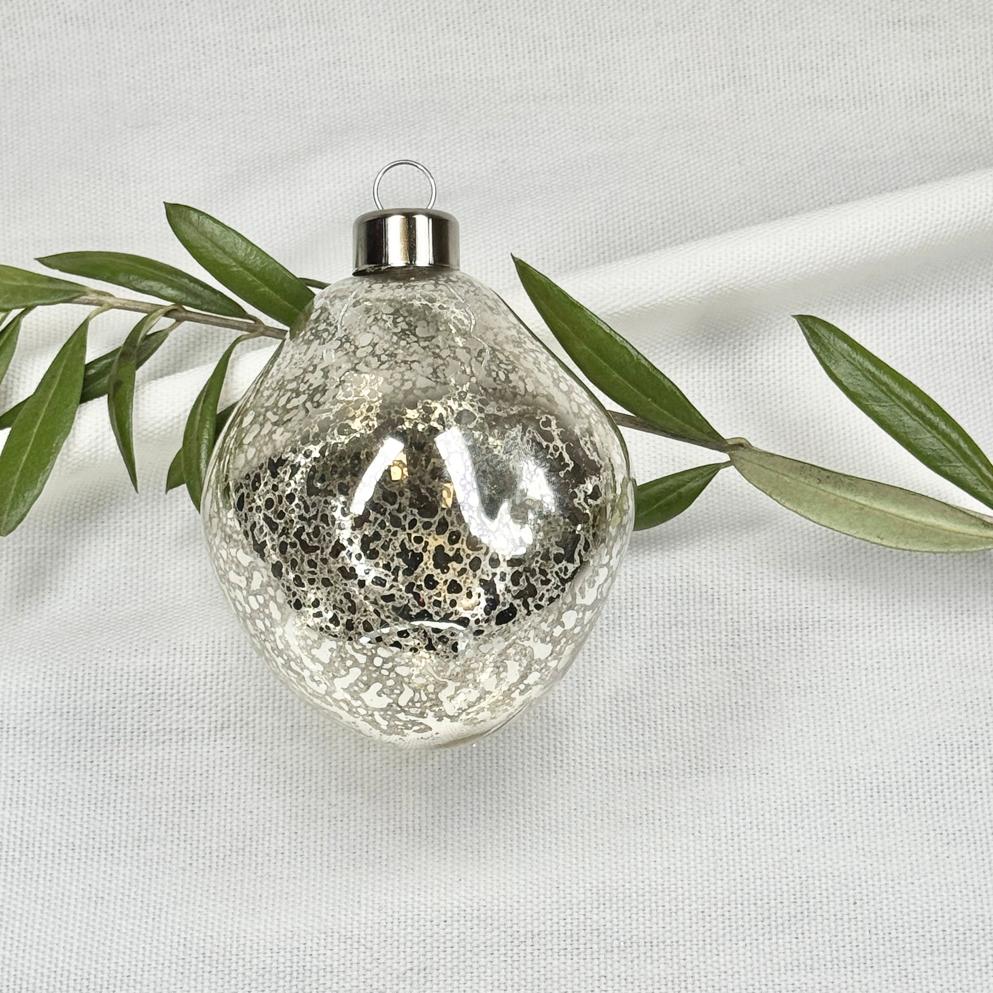 A beautiful glass ornament in a shimmering golden finish, decorated with delicate red flowers.