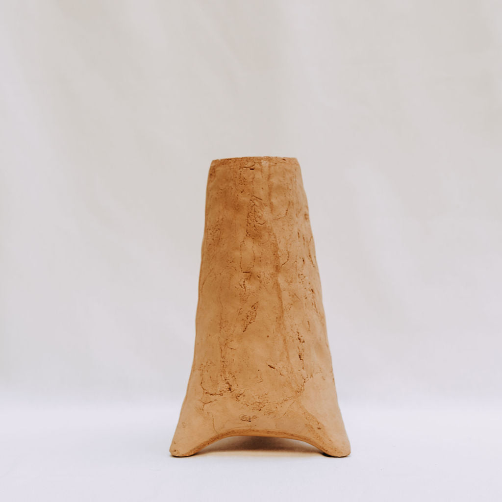 A hand formed clay pot with 3 feet. Use as a planter or vase. Each one is unique.